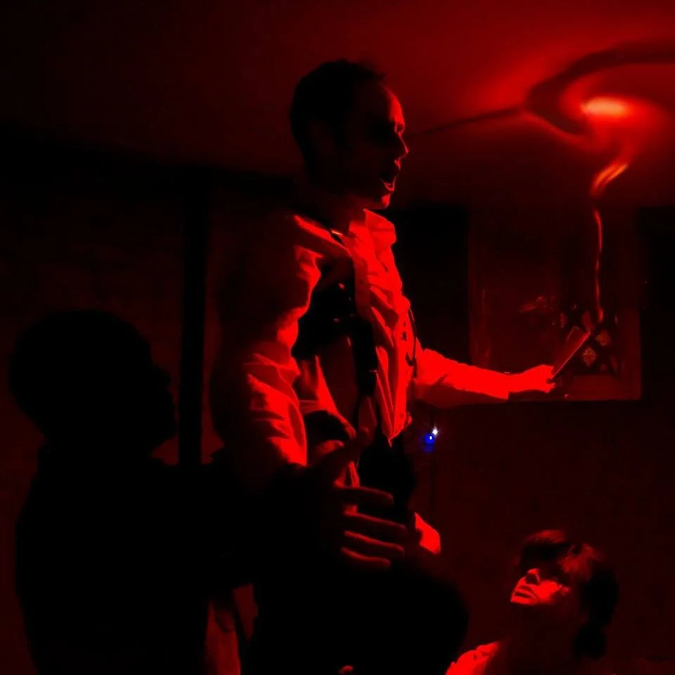 Coaxed into their seance, Horatio conjures these ghosts, who relive their haunted story for him--and You.