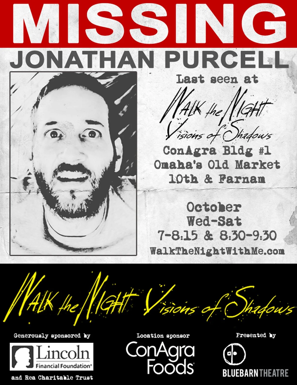 All events occur in real time, throughout the fair. Follow who you will; see what you can as Walk the Night presents Visions of Shadows.
